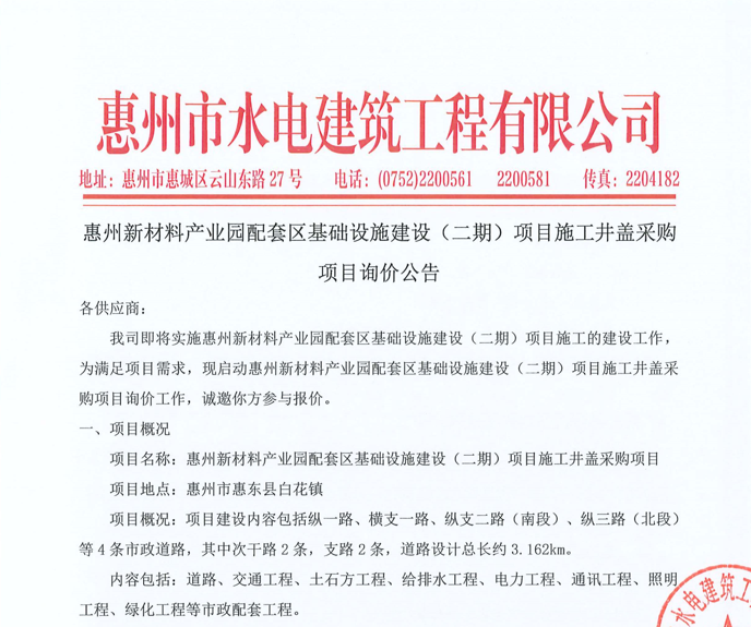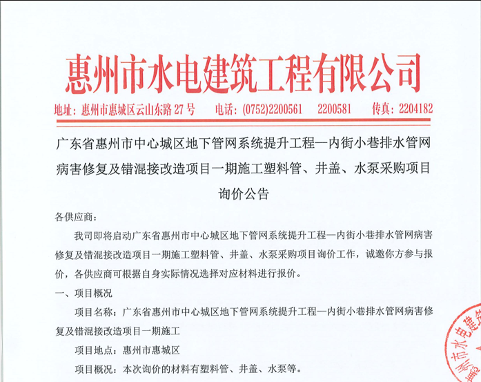 惠州市水電建筑工程有限公司成立于一九六四年四月,隸屬惠州市水務集團有限公司,是一家國有綜合性施工企業,主營水利水電工程、房屋建筑、市政工程等施工業務。公司擁有水利水電工程施工總承包一級、建筑工程施工總承包一級、市政公用工程施工總承包一級、公路工程施工總承包三級,公路路基、路面及建筑裝修裝飾專業承包二級,環保工程、機電安裝、河湖整治、輸變電工程專業承包三級等經營資質……